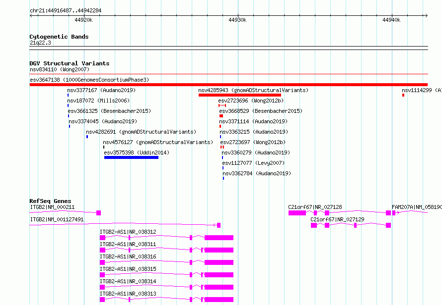Known Genes | C21orf67, FAM207A, ITGB2, ITGB2-AS1 |