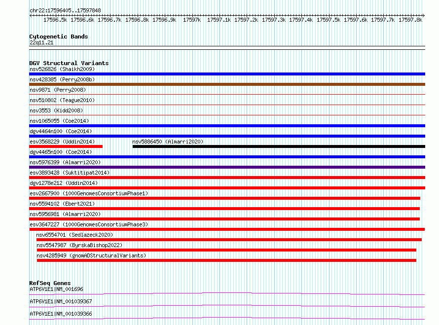 Variant DetailsVariant: esv3647227 | Internal ID | 7033968 | | Landmark | | | Location Information | | | Cytoband | 22q11.21 | | Allele length | | Assembly | Allele length | | hg38 | 1444 | | hg19 | 1444 |