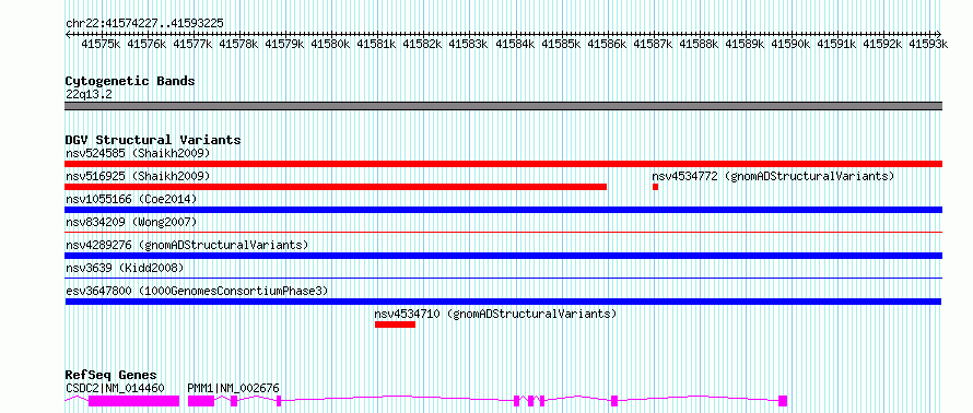 | | Variant Type | CNV gain | | Copy Number | | | Allele State | | | Allele Origin | | | Probe Count | | | Validation Flag | | | Merged Status | M | | Merged Variants | | | Supporting Variants | essv16430130 | | Samples | NA07357 | | Known Genes | CSDC2, PMM1 | | Method | Sequencing | | Analysis | | | Platform | Multiple platforms | | Comments | | | Reference | 1000_Genomes_Consortium_Phase_3 | | Pubmed ID | 21293372 | | Accession Number(s) | esv3647800