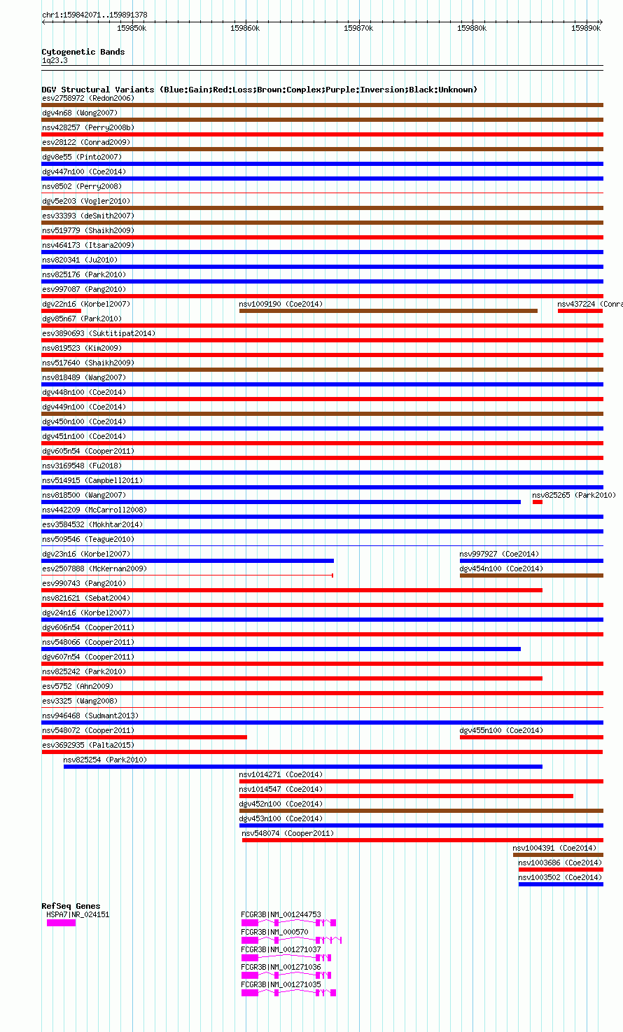 Variant DetailsVariant: esv3692935 | Internal ID | 22089780 | | Landmark | | | Location Information | | | Cytoband | 1q23.3 | | Allele length | | Assembly | Allele length | | hg38 | 49308 | | hg19 | 49308 | | hg18 | 49308 |