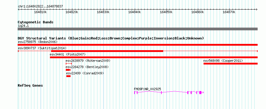Variant DetailsVariant: esv3890737| Internal ID | 19185039 | | Landmark | | | Location Information | | | Cytoband | 1q24.1 | | Allele length | | Assembly | Allele length | | hg38 | 76016 | | hg19 | 76016 | | hg18 | 76016 |