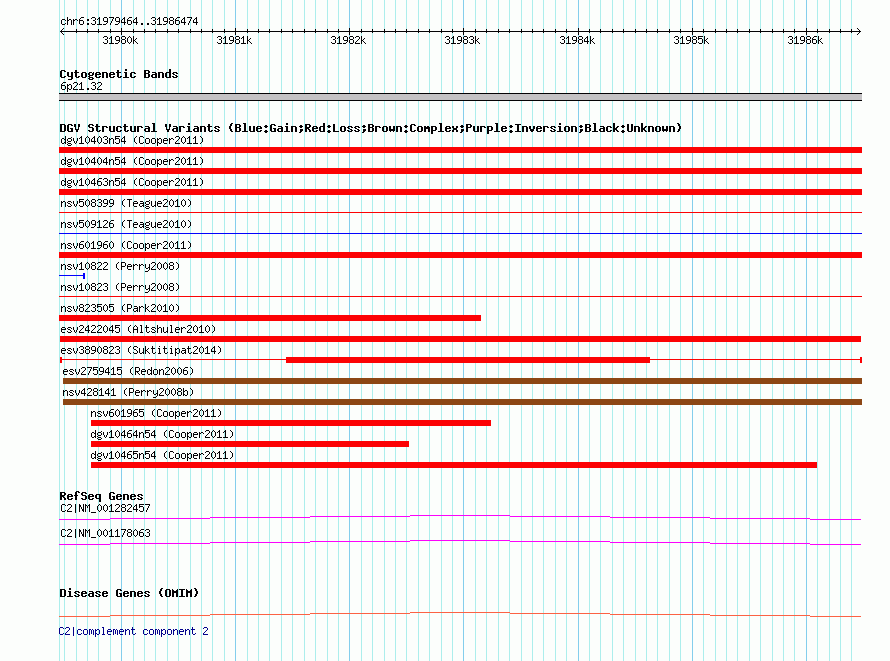 Variant DetailsVariant: esv3890823| Internal ID | 18838439 | | Landmark | | | Location Information | | | Cytoband | 6p21.32 | | Allele length | | Assembly | Allele length | | hg38 | 7011 | | hg19 | 7011 | | hg18 | 7011 |