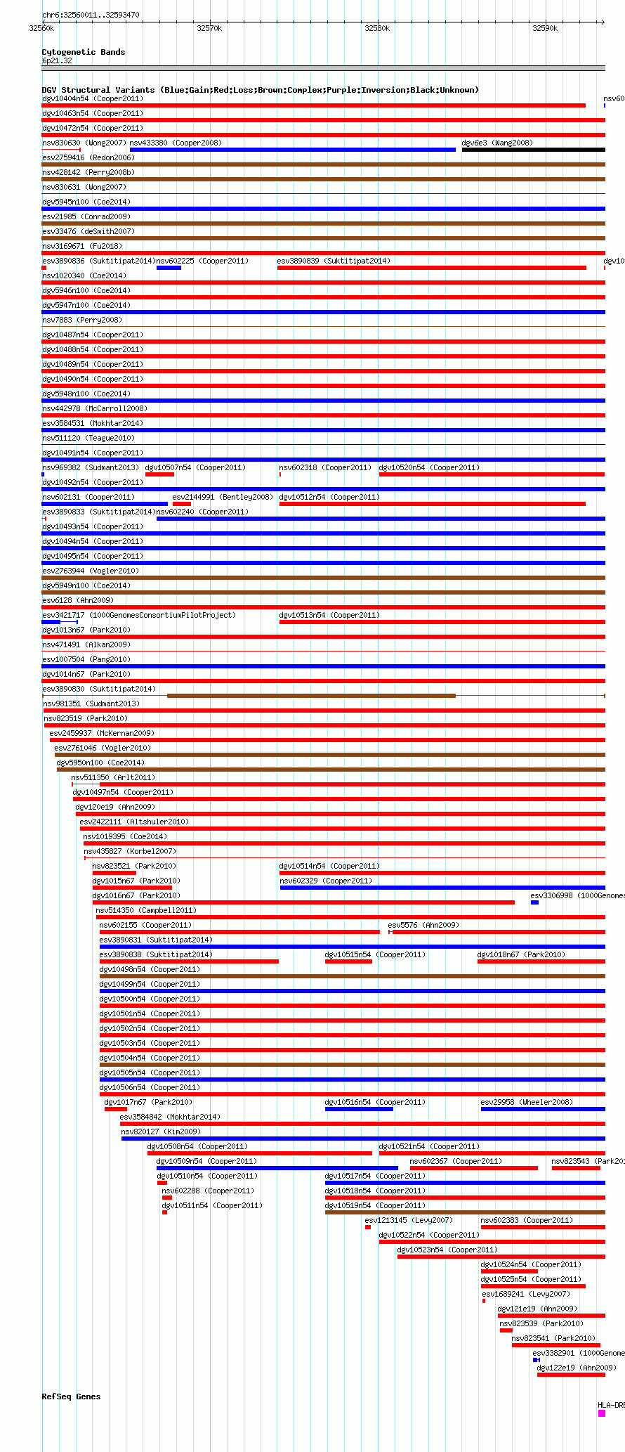 Variant DetailsVariant: esv3890830 | Internal ID | 19185132 | | Landmark | | | Location Information | | | Cytoband | 6p21.32 | | Allele length | | Assembly | Allele length | | hg38 | 33460 | | hg19 | 33460 | | hg18 | 33460 |