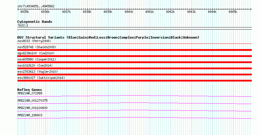 Variant DetailsVariant: esv3891027| Internal ID | 19185423 | | Landmark | | | Location Information | | | Cytoband | 7p22.1 | | Allele length | | Assembly | Allele length | | hg38 | 11212 | | hg19 | 11212 | | hg18 | 11212 |