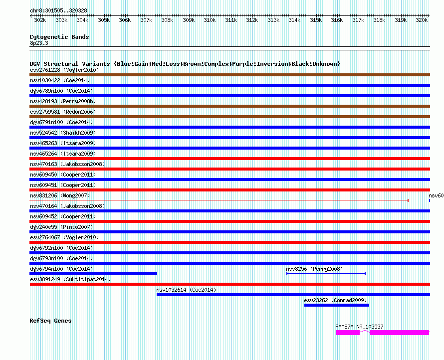 Variant DetailsVariant: esv3891249| Internal ID | 19185645 | | Landmark | | | Location Information | | | Cytoband | 8p23.3 | | Allele length | | Assembly | Allele length | | hg38 | 18824 | | hg19 | 18824 | | hg18 | 18824 |