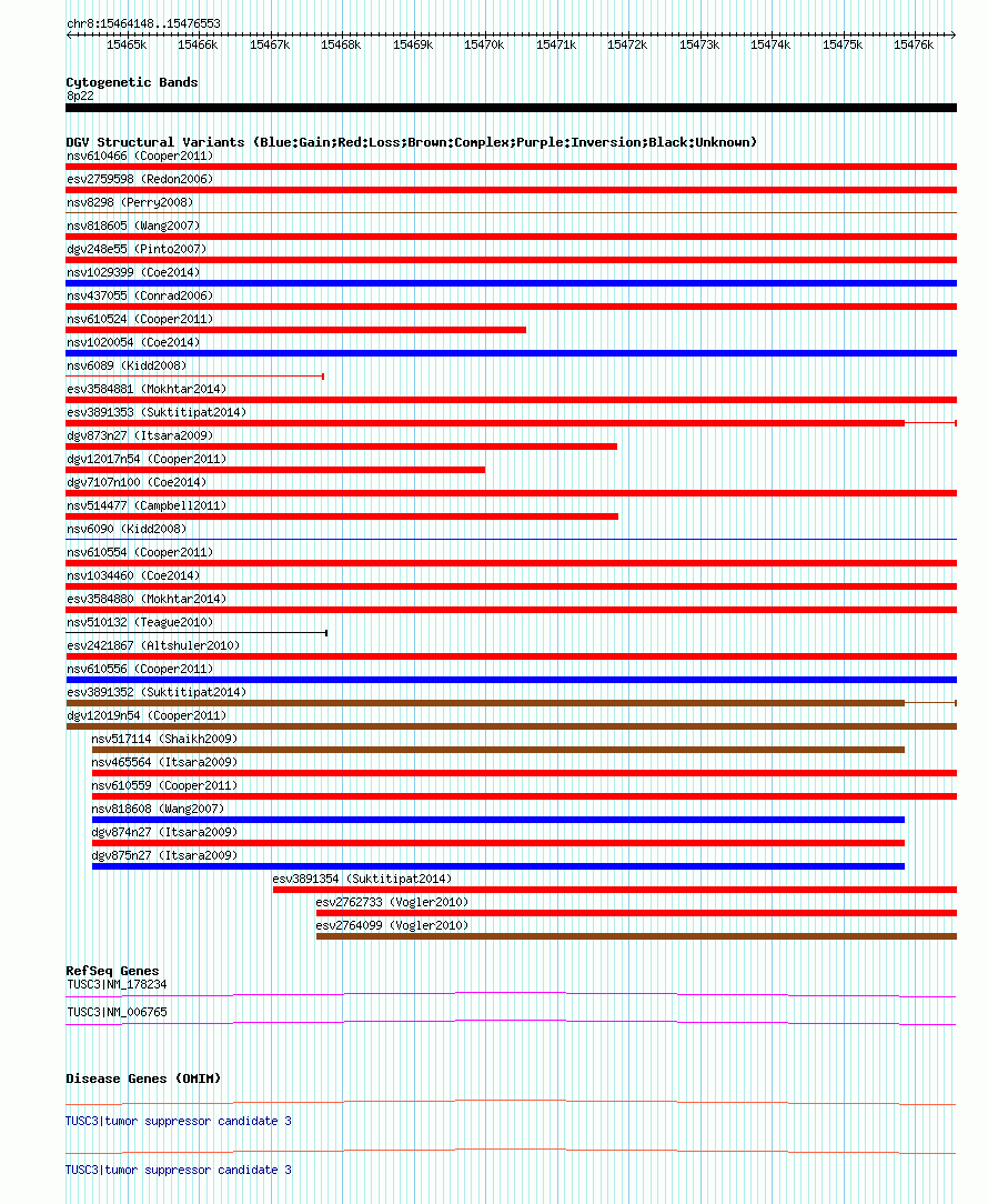 Variant DetailsVariant: esv3891352| Internal ID | 19185748 | | Landmark | | | Location Information | | | Cytoband | 8p22 | | Allele length | | Assembly | Allele length | | hg38 | 12406 | | hg19 | 12406 | | hg18 | 12406 |