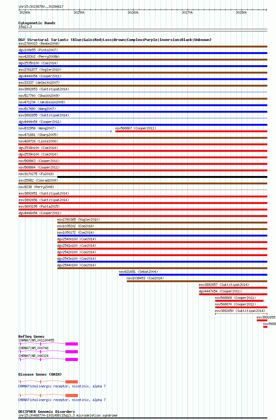 Variant DetailsVariant: esv3892651| Internal ID | 19183471 | | Landmark | | | Location Information | | | Cytoband | 15q13.3 | | Allele length | | Assembly | Allele length | | hg38 | 45838 | | hg19 | 45838 | | hg18 | 45838 |