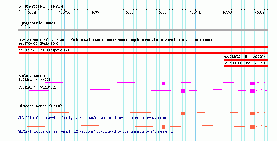 | | Variant Type | CNV loss | | Copy Number | | | Allele State | | | Allele Origin | | | Probe Count | | | Validation Flag | | | Merged Status | M | | Merged Variants | | | Supporting Variants | essv25785758 | | Samples | | | Known Genes | SLC12A1 | | Method | SNP array | | Analysis | | | Platform | Illumina HumanHap 610 | | Comments | | | Reference | Suktitipat_et_al_2014 | | Pubmed ID | 25118596 | | Accession Number(s) | esv3892690