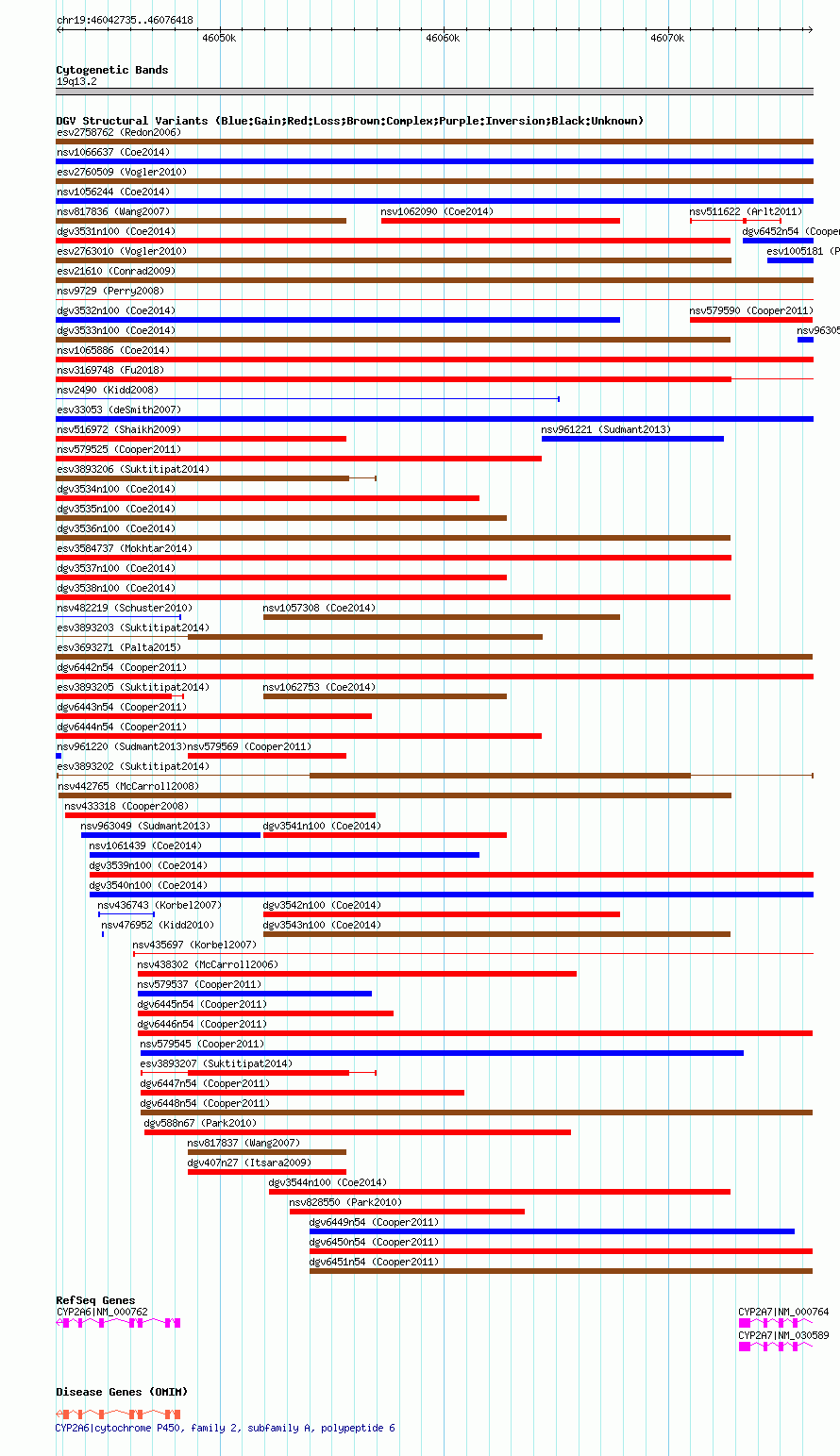 | | Variant Type | CNV gain+loss | | Copy Number | | | Allele State | | | Allele Origin | | | Probe Count | | | Validation Flag | | | Merged Status | M | | Merged Variants | | | Supporting Variants | essv25798086, essv25796297, essv25798067, essv25787418, essv25779672, essv25780113, essv25797322, essv25778573, essv25797776, essv25796681, essv25780554, essv25796205, essv25779154, essv25796332, essv25797409, essv25797569, essv25783779, essv25792668, essv25797813, essv25781669, essv25796261, essv25779224, essv25798893, essv25797492, essv25797427, essv25797434, essv25796511, essv25787326, essv25796645, essv25796936, essv25796035, essv25797283, essv25797505, essv25797914, essv25797100, essv25796120, essv25796566, essv25797560, essv25797071, essv25796395, essv25797547, essv25796270, essv25797512, essv25797211, essv25785018, essv25796730, essv25796847, essv25783002, essv25797516, essv25797062, essv25796680, essv25798803, essv25795987, essv25797004, essv25794570, essv25796705, essv25796283, essv25781651, essv25781883, essv25796368, essv25797463, essv25780891, essv25788015, essv25796342, essv25796620, essv25782891, essv25796328, essv25796858, essv25797766, essv25782504, essv25797827, essv25797150, essv25796695, essv25796251, essv25798681, essv25797633, essv25797974 | | Samples | | | Known Genes | CYP2A6, CYP2A7 | | Method | SNP array | | Analysis | | | Platform | Illumina HumanHap 610 Illumina Human OmniExpress | | Comments | | | Reference | Suktitipat_et_al_2014 | | Pubmed ID | 25118596 | | Accession Number(s) | esv3893202