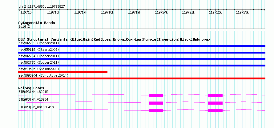 Variant DetailsVariant: esv3893204| Internal ID | 19184024 | | Landmark | | | Location Information | | | Cytoband | 2q14.2 | | Allele length | | Assembly | Allele length | | hg38 | 9143 | | hg19 | 9143 | | hg18 | 9143 |