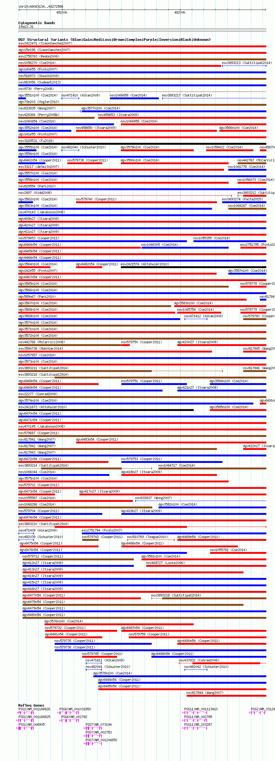 Variant DetailsVariant: esv3893210 | Internal ID | 19184030 | | Landmark | | | Location Information | | | Cytoband | 19q13.2 | | Allele length | | Assembly | Allele length | | hg38 | 209455 | | hg19 | 209455 | | hg18 | 209455 |