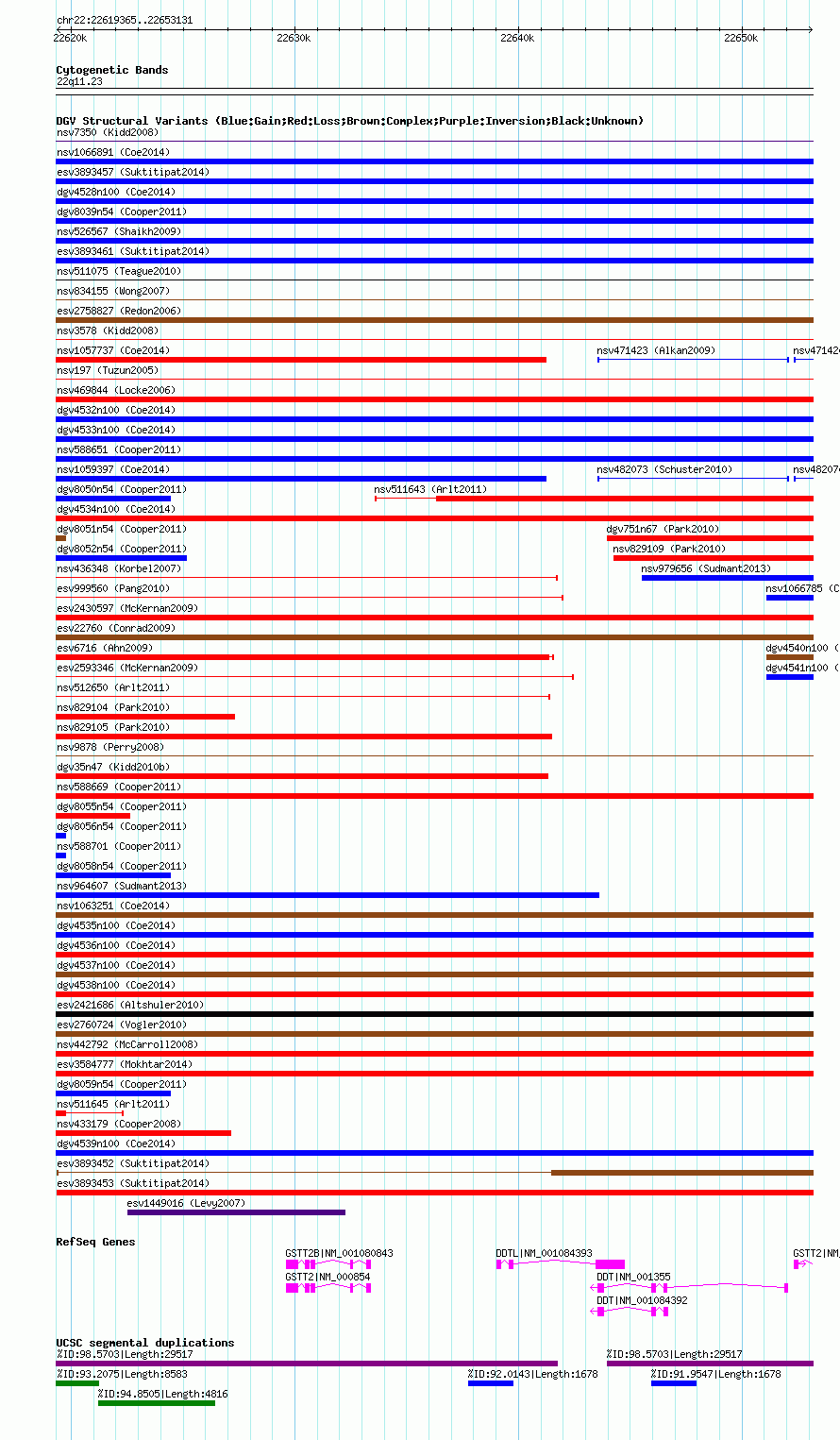 | | Variant Type | CNV loss | | Copy Number | | | Allele State | | | Allele Origin | | | Probe Count | | | Validation Flag | | | Merged Status | M | | Merged Variants | | | Supporting Variants | essv25798384, essv25786810, essv25786344 | | Samples | | | Known Genes | DDT, DDTL, GSTT2, GSTT2B | | Method | SNP array | | Analysis | | | Platform | Illumina HumanHap 610 | | Comments | | | Reference | Suktitipat_et_al_2014 | | Pubmed ID | 25118596 | | Accession Number(s) | esv3893453