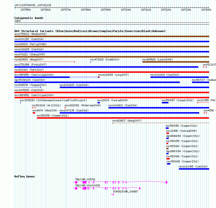 Variant DetailsVariant: esv3893851| Internal ID | 19184671 | | Landmark | | | Location Information | | | Cytoband | 3q29 | | Allele length | | Assembly | Allele length | | hg38 | 96793 | | hg19 | 96793 | | hg18 | 96793 |