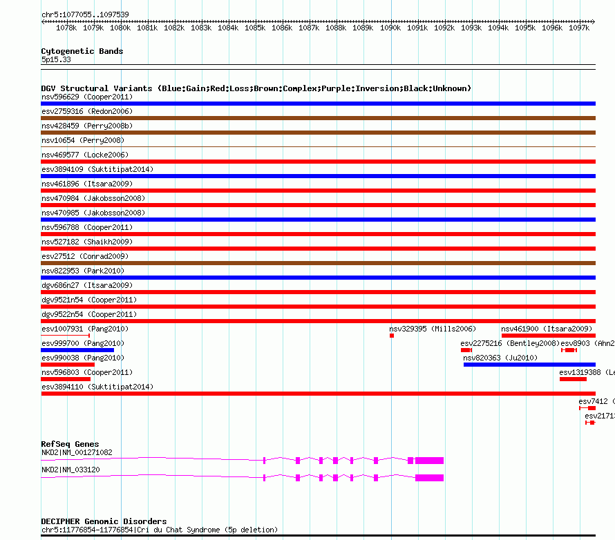 Variant DetailsVariant: esv3894110| Internal ID | 19184964 | | Landmark | | | Location Information | | | Cytoband | 5p15.33 | | Allele length | | Assembly | Allele length | | hg38 | 20485 | | hg19 | 20485 | | hg18 | 20485 |