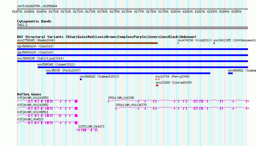 Variant DetailsVariant: esv3894198| Internal ID | 19185267 | | Landmark | | | Location Information | | | Cytoband | 5q12.1 | | Allele length | | Assembly | Allele length | | hg38 | 188911 | | hg19 | 188911 | | hg18 | 188911 |