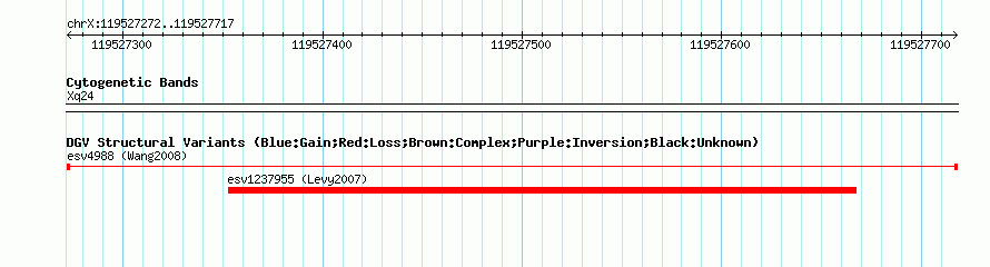OuterchrX:119527272..119527717hg18UCSC Ensembl