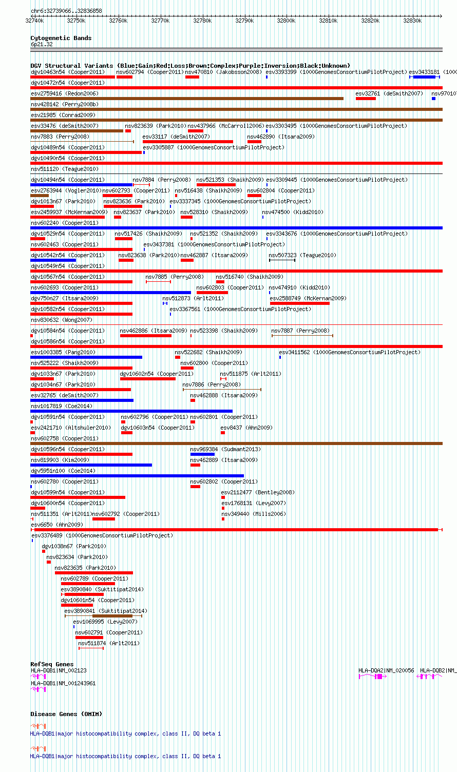 Variant DetailsVariant: esv6650 | Internal ID | 9950489 | | Landmark | | | Location Information | | | Cytoband | 6p21.32 | | Allele length | | Assembly | Allele length | | hg38 | 97793 | | hg19 | 97793 | | hg18 | 97793 |
