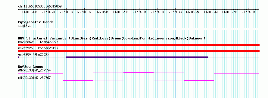 Outerchr11:66818535..66819859hg18UCSC Ensembl