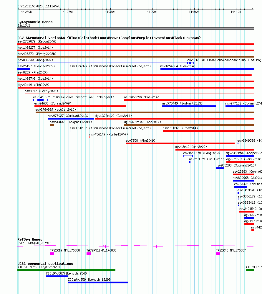 Variant DetailsVariant: esv8805 | Internal ID | 9606073 | | Landmark | | | Location Information | | | Cytoband | 12p13.2 | | Allele length | | Assembly | Allele length | | hg38 | 56254 | | hg19 | 56254 | | hg18 | 56254 |