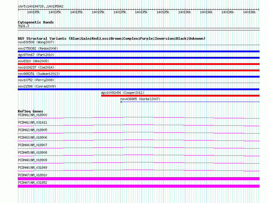 | Known Genes | PCDHA1, PCDHA2, PCDHA3, PCDHA4, PCDHA5, PCDHA6, PCDHA7 |
