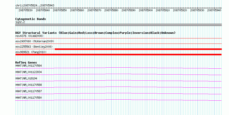 | | Variant Type | CNV deletion | | Copy Number | | | Allele State | | | Allele Origin | | | Probe Count | | | Validation Flag | | | Merged Status | M | | Merged Variants | | | Supporting Variants | essv3581153 | | Samples | HuRef | | Known Genes | HHAT | | Method | Sequencing | | Analysis | | | Platform | Sanger Sequencing | | Comments | | | Reference | Pang_et_al_2010 | | Pubmed ID | 20482838 | | Accession Number(s) | esv989821