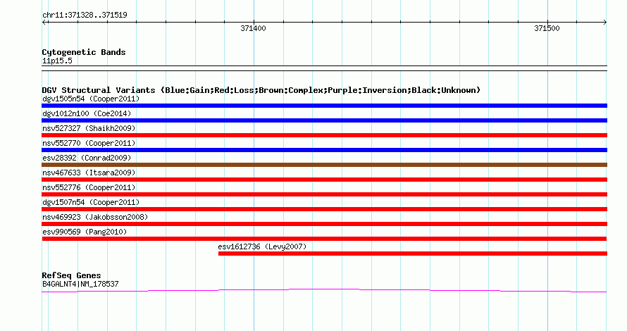 Variant DetailsVariant: esv990569| Internal ID | 7076700 | | Landmark | | | Location Information | | | Cytoband | 11p15.5 | | Allele length | | Assembly | Allele length | | hg38 | 192 | | hg19 | 192 | | hg18 | 192 |