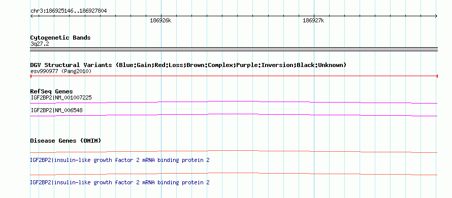 Variant DetailsVariant: esv990977| Internal ID | 6726942 | | Landmark | | | Location Information | | | Cytoband | 3q27.2 | | Allele length | | Assembly | Allele length | | hg38 | 2659 | | hg19 | 2659 | | hg18 | 2659 |
