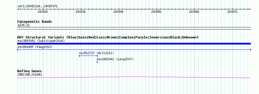 | | Variant Type | CNV insertion | | Copy Number | | | Allele State | | | Allele Origin | | | Probe Count | | | Validation Flag | | | Merged Status | M | | Merged Variants | | | Supporting Variants | essv3563891 | | Samples | HuRef | | Known Genes | CNR2 | | Method | Sequencing | | Analysis | | | Platform | Sanger Sequencing | | Comments | | | Reference | Pang_et_al_2010 | | Pubmed ID | 20482838 | | Accession Number(s) | esv991485