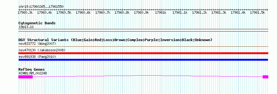 Variant DetailsVariant: esv991938| Internal ID | 7077612 | | Landmark | | | Location Information | | | Cytoband | 19p13.11 | | Allele length | | Assembly | Allele length | | hg38 | 1286 | | hg19 | 1286 | | hg18 | 1286 |