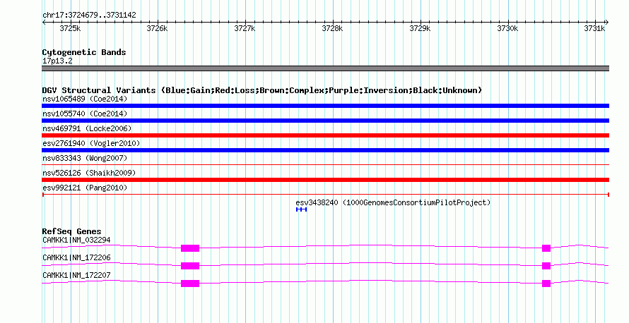 Variant DetailsVariant: esv992121| Internal ID | 7077795 | | Landmark | | | Location Information | | | Cytoband | 17p13.2 | | Allele length | | Assembly | Allele length | | hg38 | 6464 | | hg19 | 6464 | | hg18 | 6464 |