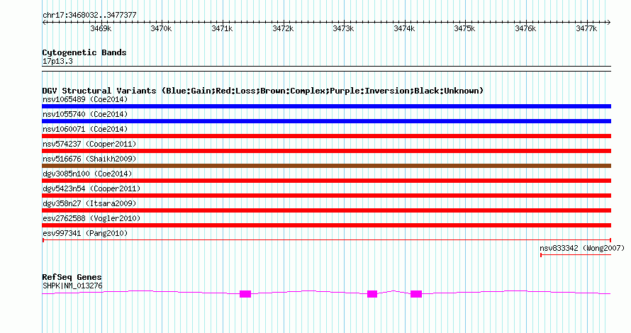 Variant DetailsVariant: esv997341| Internal ID | 7081311 | | Landmark | | | Location Information | | | Cytoband | 17p13.2 | | Allele length | | Assembly | Allele length | | hg38 | 9346 | | hg19 | 9346 | | hg18 | 9346 |