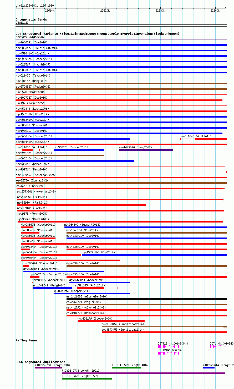 Variant DetailsVariant: esv999560| Internal ID | 6735484 | | Landmark | | | Location Information | | | Cytoband | 22q11.23 | | Allele length | | Assembly | Allele length | | hg38 | 38128 | | hg19 | 38130 | | hg18 | 38130 |