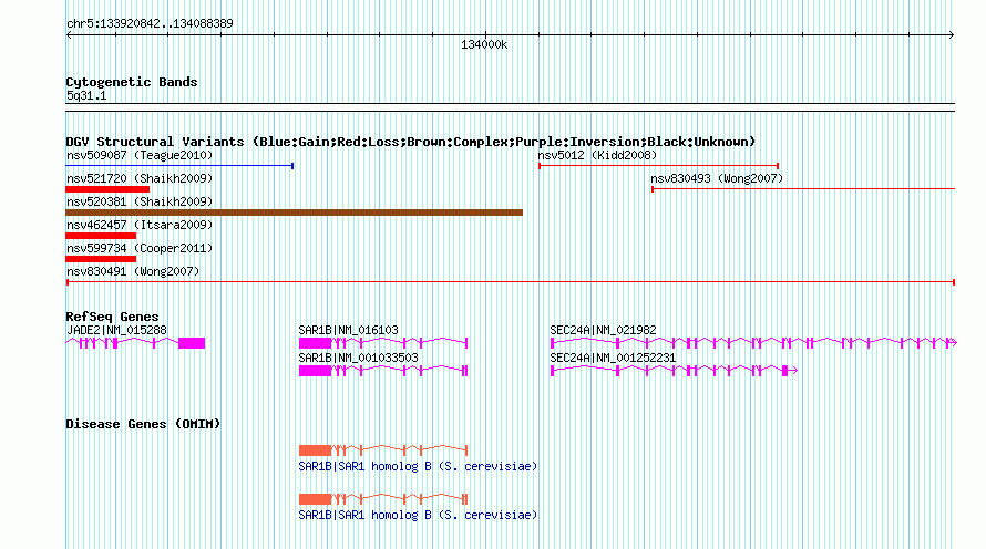 Variant DetailsVariant: nssv1445075 | Internal ID | 16442365 | | Landmark | | | Location Information | | | Cytoband | 5q31.1 | | Allele length | | Assembly | Allele length | | hg38 | 167548 | | hg19 | 167548 | | hg18 | 167548 | | hg17 | 167548 |
