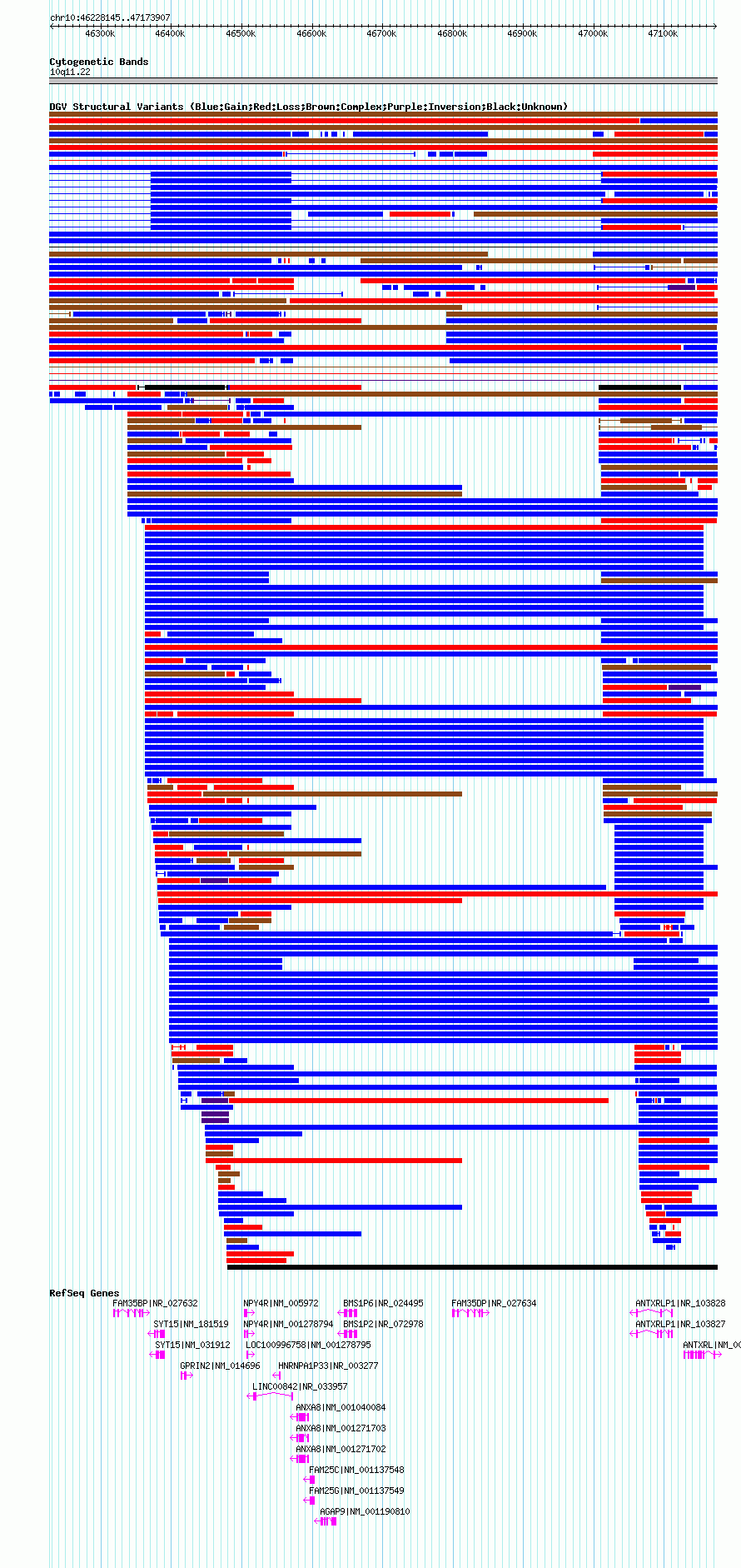 Variant DetailsVariant: nssv18500| Internal ID | 15837510 | | Landmark | | | Location Information | | | Cytoband | 10q11.22 | | Allele length | | Assembly | Allele length | | hg19 | 895763 | | hg18 | 945763 | | hg17 | 945763 |