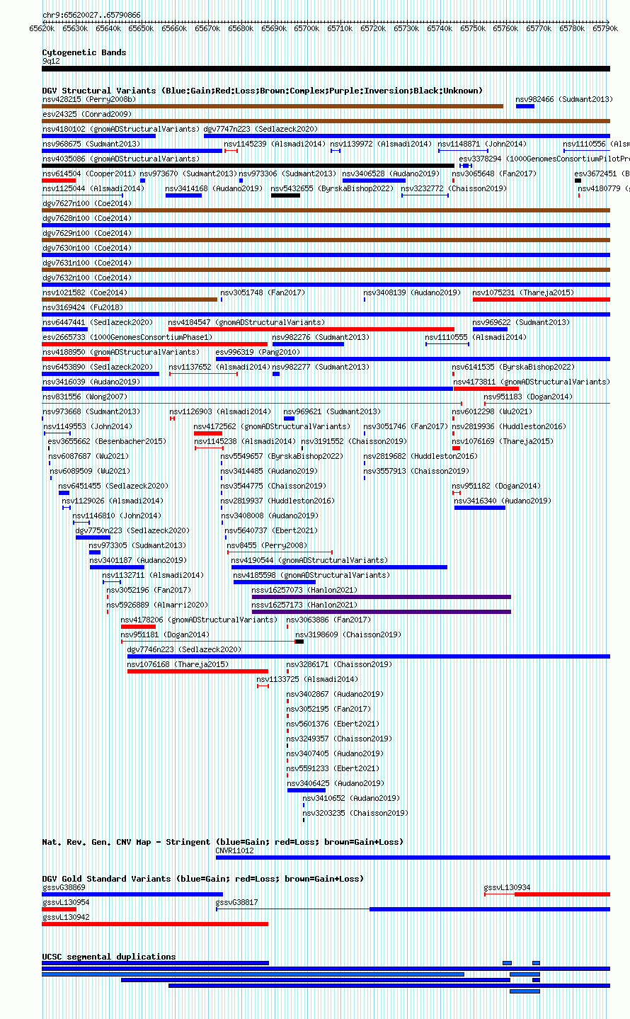 | Location Information | | Type | Coordinates | Assembly | Other Links | | Inner | chr9:65621307..65789584 | hg17 | UCSC Ensembl | | Outer | chr9:65620027..65790866 | hg17 | UCSC Ensembl |