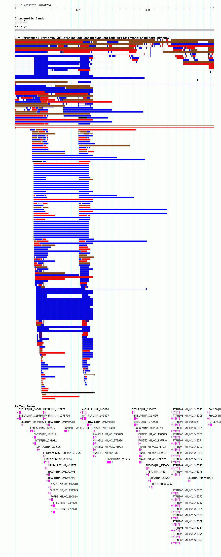 Variant DetailsVariant: nssv18966| Internal ID | 15829709 | | Landmark | | | Location Information | | | Cytoband | 10q11.21 | | Allele length | | Assembly | Allele length | | hg19 | 2593535 | | hg18 | 2843535 | | hg17 | 2843535 |