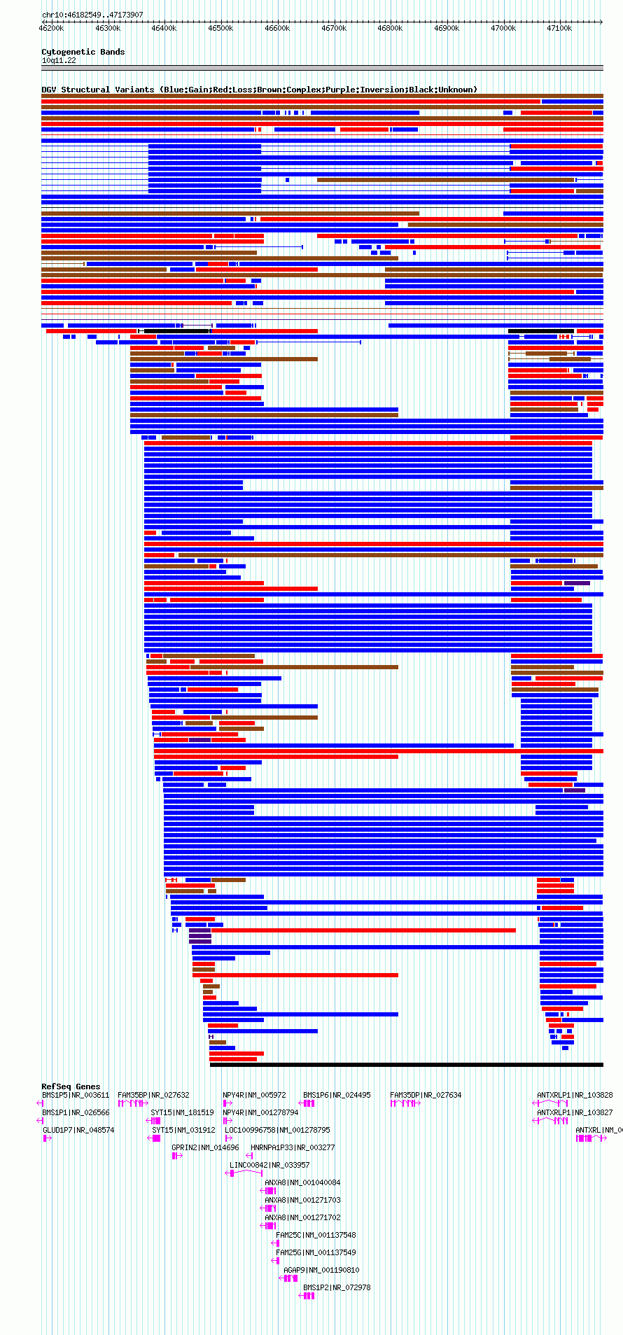 Variant DetailsVariant: nssv19299| Internal ID | 15831494 | | Landmark | | | Location Information | | | Cytoband | 10q11.22 | | Allele length | | Assembly | Allele length | | hg19 | 941359 | | hg18 | 991359 | | hg17 | 991359 |