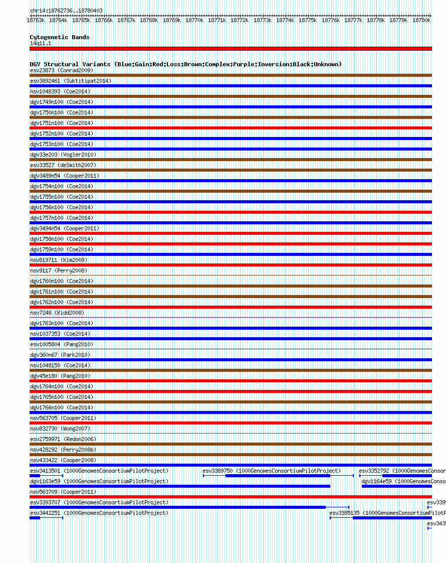 | Allele length | | Assembly | Allele length | | hg38 | 17635 | | hg19 | 17668 | | hg18 | 17668 | | hg17 | 17668 |