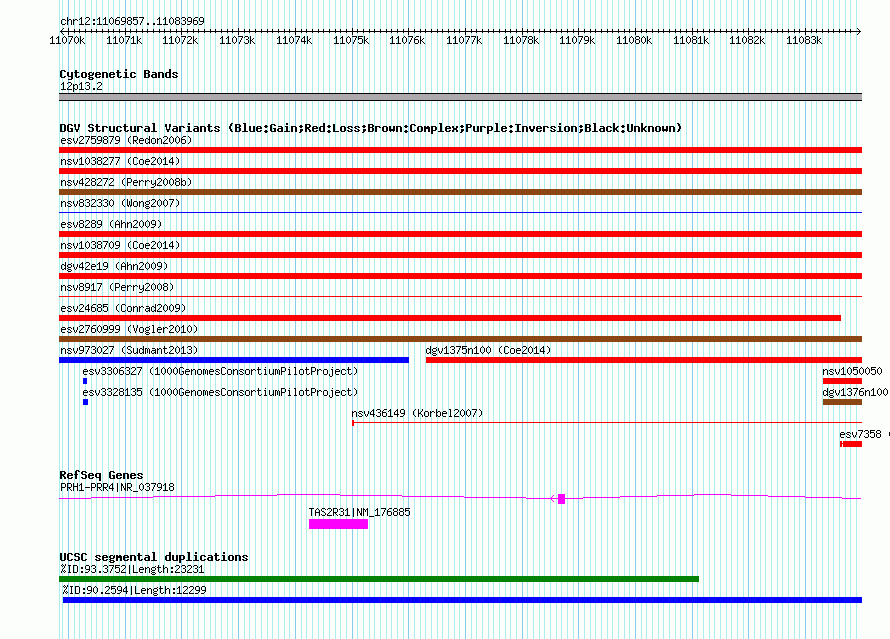| Known Genes | PRH1-PRR4, TAS2R31 |
