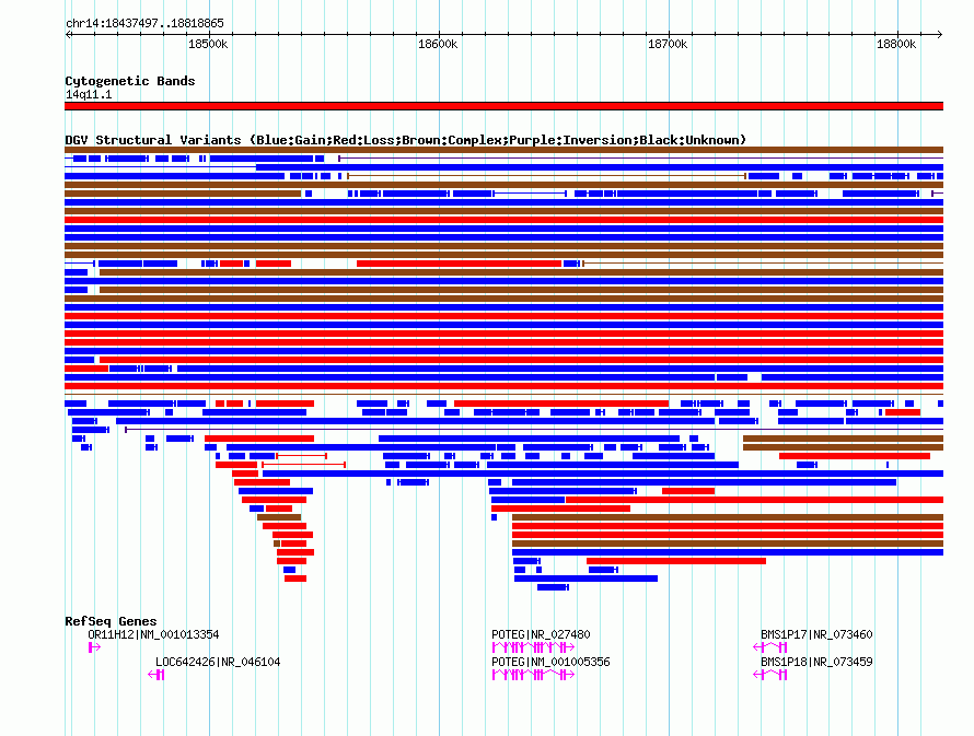 | Known Genes | BMS1P17, BMS1P18, LOC642426, OR11H12, POTEG |