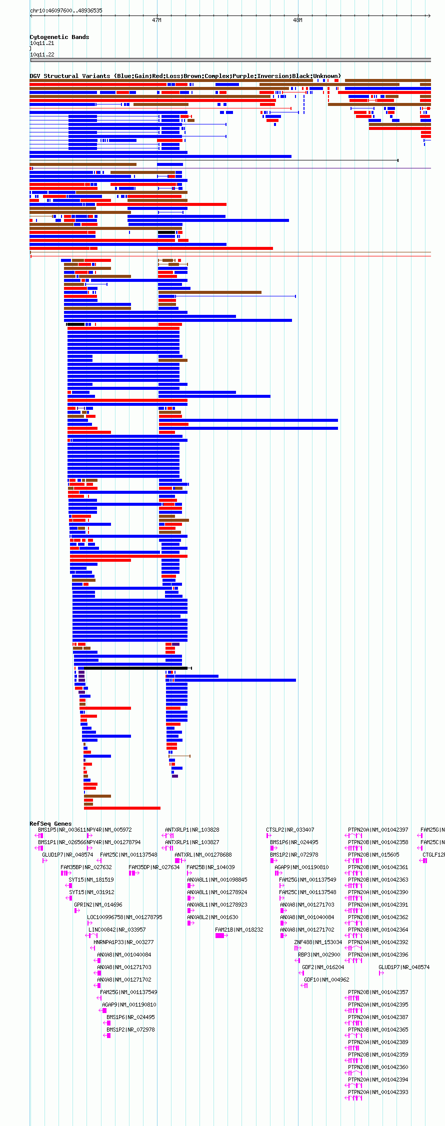 Variant DetailsVariant: nssv20863| Internal ID | 15833286 | | Landmark | | | Location Information | | | Cytoband | 10q11.21 | | Allele length | | Assembly | Allele length | | hg19 | 2588936 | | hg18 | 2838936 | | hg17 | 2838936 |