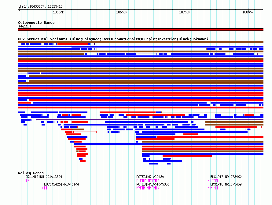 | Known Genes | BMS1P17, BMS1P18, LOC642426, OR11H12, POTEG |