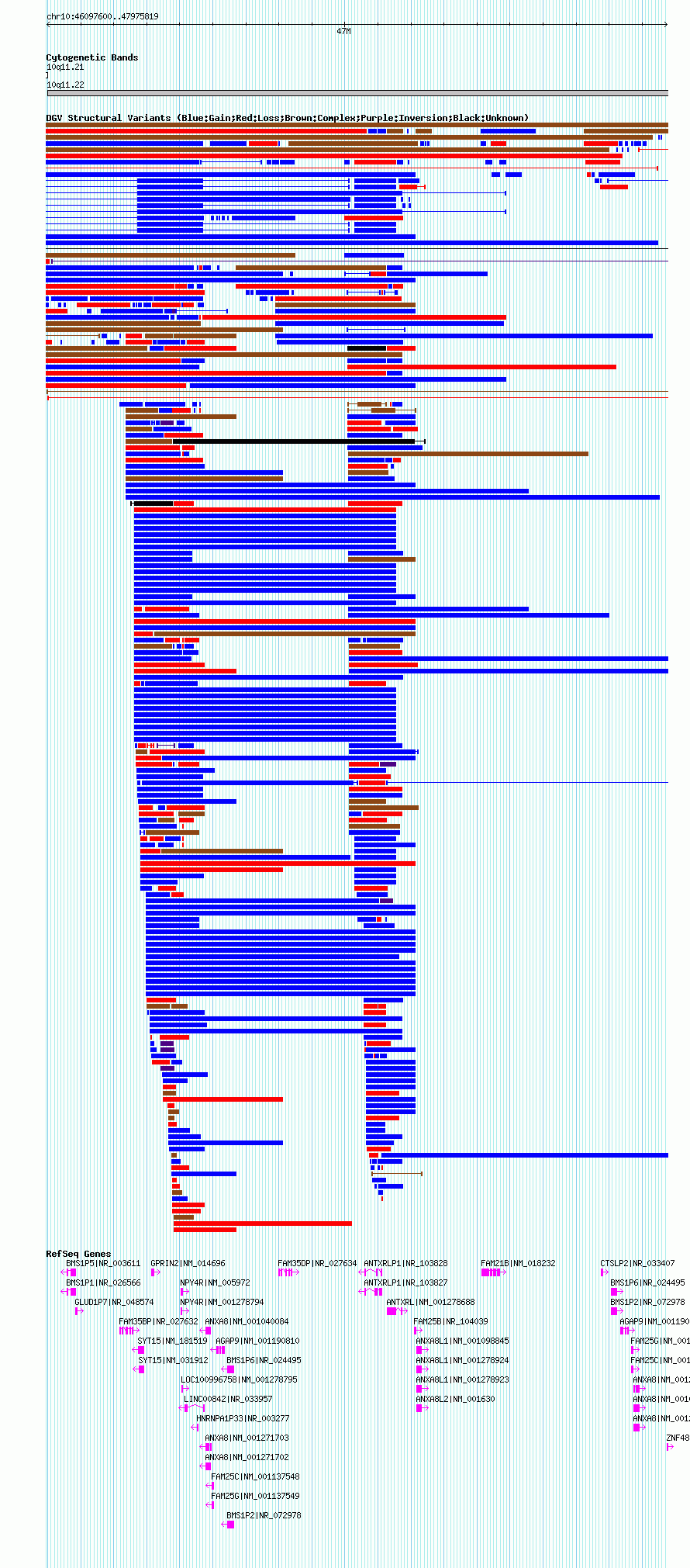 Variant DetailsVariant: nssv21644| Internal ID | 15834297 | | Landmark | | | Location Information | | | Cytoband | 10q11.21 | | Allele length | | Assembly | Allele length | | hg19 | 1678220 | | hg18 | 1878220 | | hg17 | 1878220 |