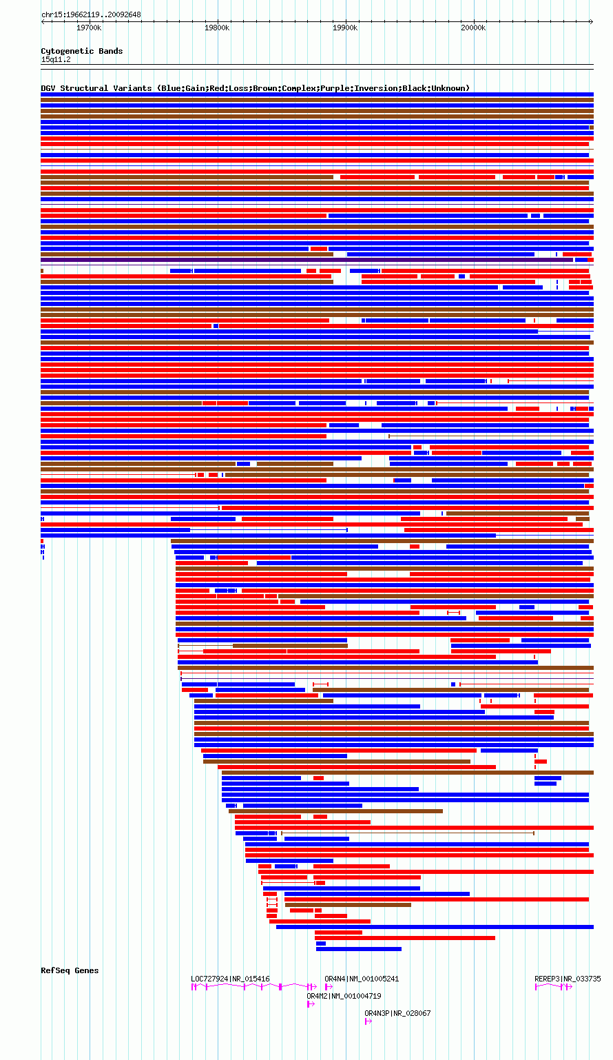 Variant DetailsVariant: nssv21895| Internal ID | 15840734 | | Landmark | | | Location Information | | | Cytoband | 15q11.2 | | Allele length | | Assembly | Allele length | | hg38 | 1111203 | | hg19 | 1193825 | | hg18 | 430530 | | hg17 | 536319 |