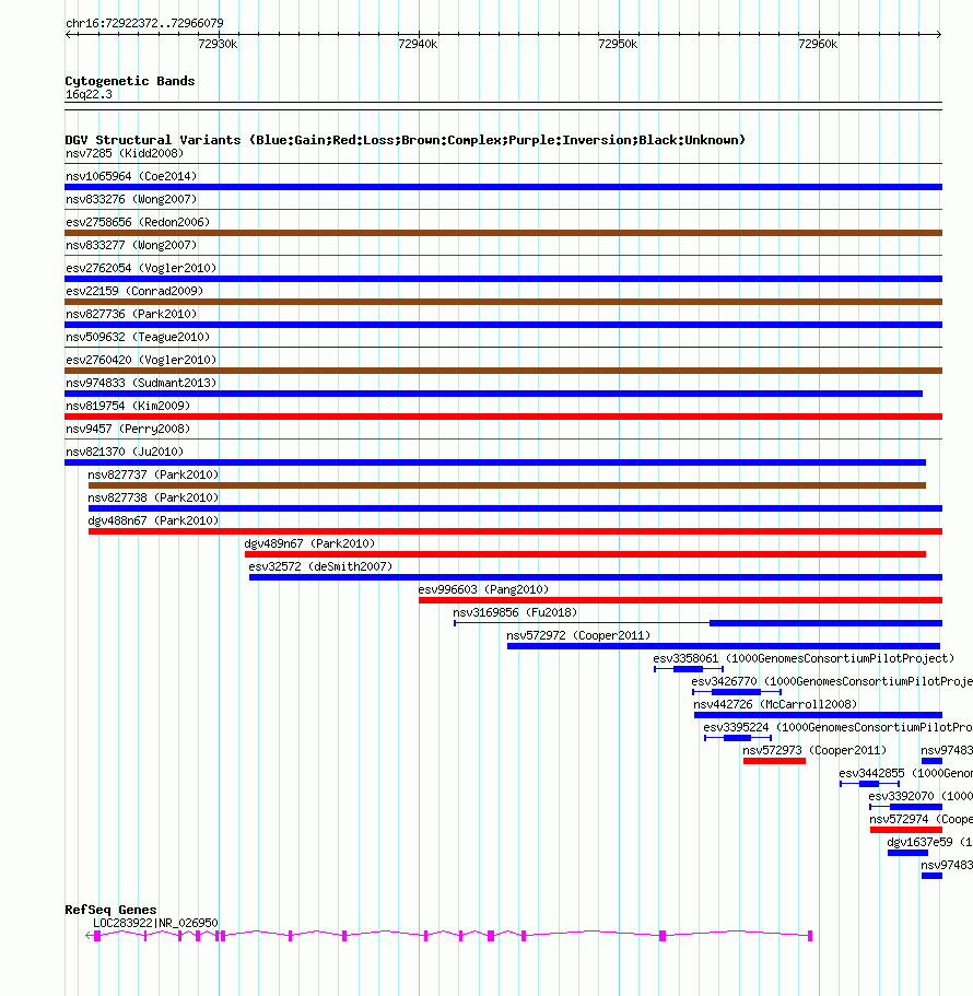 | Cytoband | 16q22.3 |