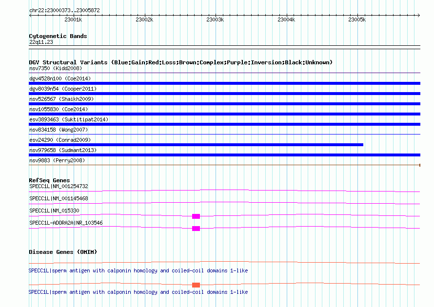 | Known Genes | SPECC1L, SPECC1L-ADORA2A |