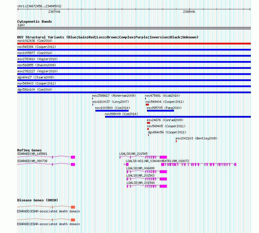 | Known Genes | EDARADD, HEATR1, LGALS8, LGALS8-AS1 |