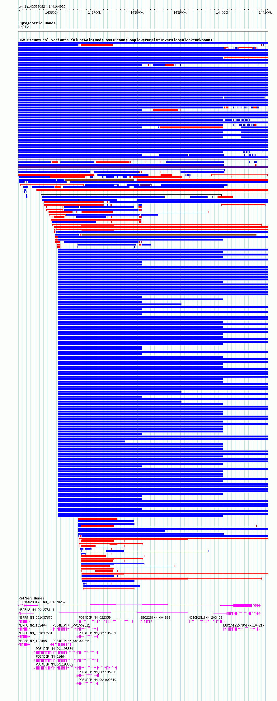 Variant DetailsVariant: nssv451230| Internal ID | 18620455 | | Landmark | | | Location Information | | | Cytoband | 1q21.1 | | Allele length | | Assembly | Allele length | | hg38 | 3035471 | | hg19 | 582854 | | hg18 | 582854 |