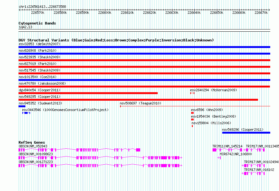 | Known Genes | MIR6742, OBSCN, TRIM11, TRIM17 |