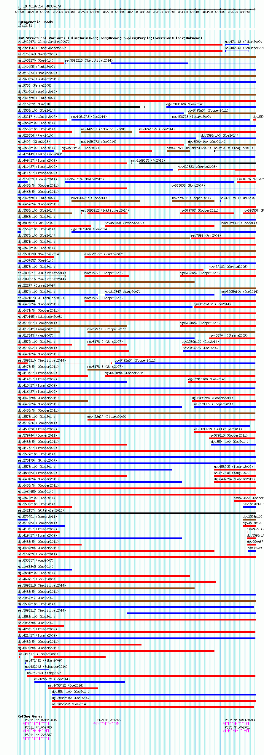 Variant DetailsVariant: nssv546516 | Internal ID | 15556061 | | Landmark | | | Location Information | | | Cytoband | 19q13.31 | | Allele length | | Assembly | Allele length | | hg38 | 189856 | | hg19 | 189856 | | hg18 | 189856 |